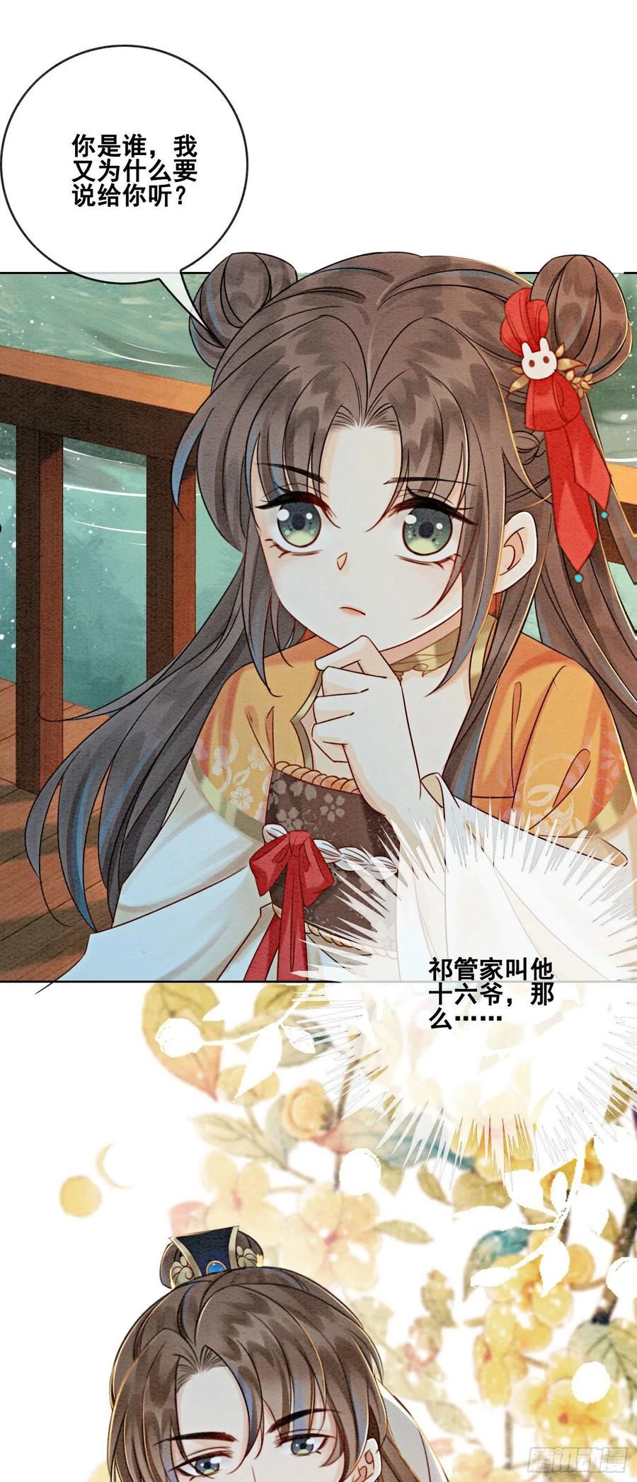 简介许凯&吴谨言主演,欢娱影视同名电视剧改编漫画!少女姚子衿遭受驱逐,被迫离开皇太孙朱瞻基身边!多年后她成为尚食局女官,他们是否可以再续绝美爱恋?