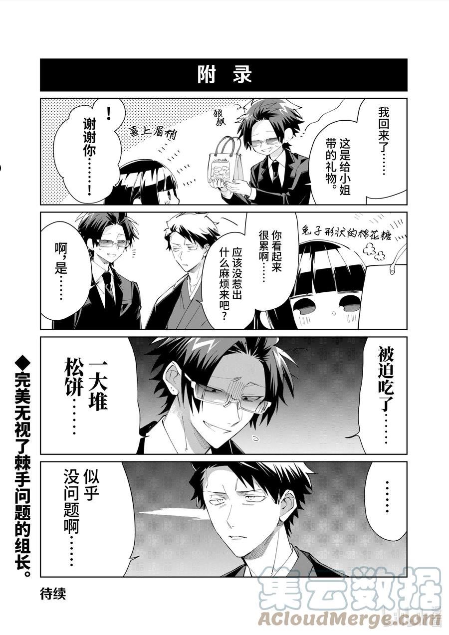 组长女儿与照料专员漫画,雾岛透28岁,黑道樱树组的少当家——因平日在道上混的时候无法无天为所欲为,人称“樱树组的恶魔”。这样的雾岛却在那一天,突然被任命为组长独生女的照料专员(保姆)!?小小幼女与暴力帅哥的温馨(?)日常就此展开!