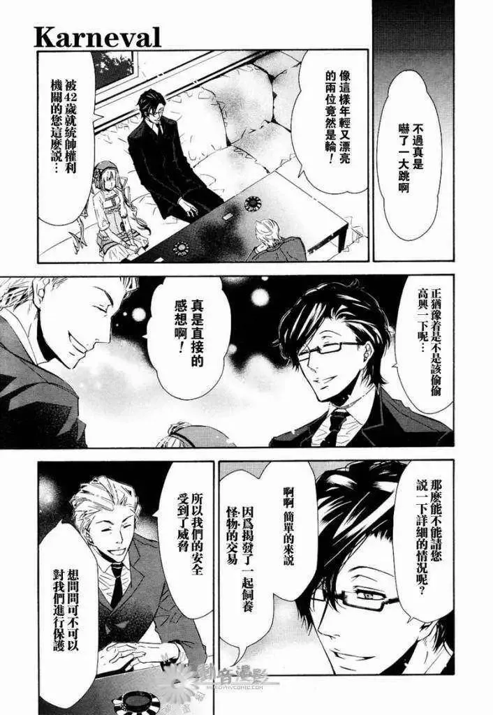 黑色嘉年华又名KARNEVAL狂欢节狂欢节,类型为魔幻|冒险的高人气漫画,漫画简介:激烈的攻防战!!另一方面,将盗猎者引入维恩特湖,并且假藉烛医生的名义私自贩卖禁药的人逐渐浮出台面!!而无和花砾好不容易终于找到嘉禄了,但是却闹双胞出现两个嘉禄!!其中一个嘉禄正命在旦夕--------...