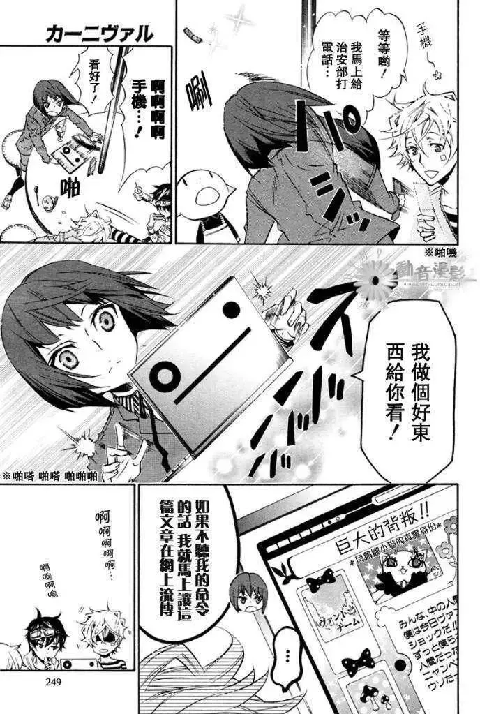 黑色嘉年华又名KARNEVAL狂欢节狂欢节,类型为魔幻|冒险的高人气漫画,漫画简介:激烈的攻防战!!另一方面,将盗猎者引入维恩特湖,并且假藉烛医生的名义私自贩卖禁药的人逐渐浮出台面!!而无和花砾好不容易终于找到嘉禄了,但是却闹双胞出现两个嘉禄!!其中一个嘉禄正命在旦夕--------...