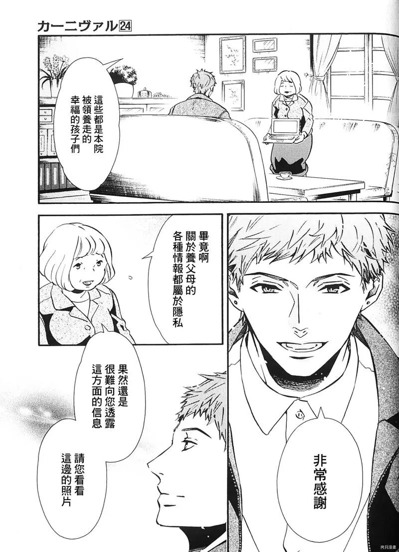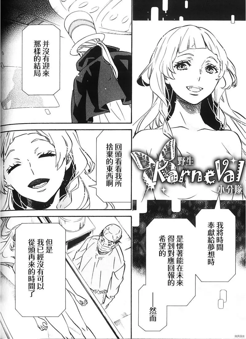 黑色嘉年华又名KARNEVAL狂欢节狂欢节,类型为魔幻|冒险的高人气漫画,漫画简介:激烈的攻防战!!另一方面,将盗猎者引入维恩特湖,并且假藉烛医生的名义私自贩卖禁药的人逐渐浮出台面!!而无和花砾好不容易终于找到嘉禄了,但是却闹双胞出现两个嘉禄!!其中一个嘉禄正命在旦夕--------...