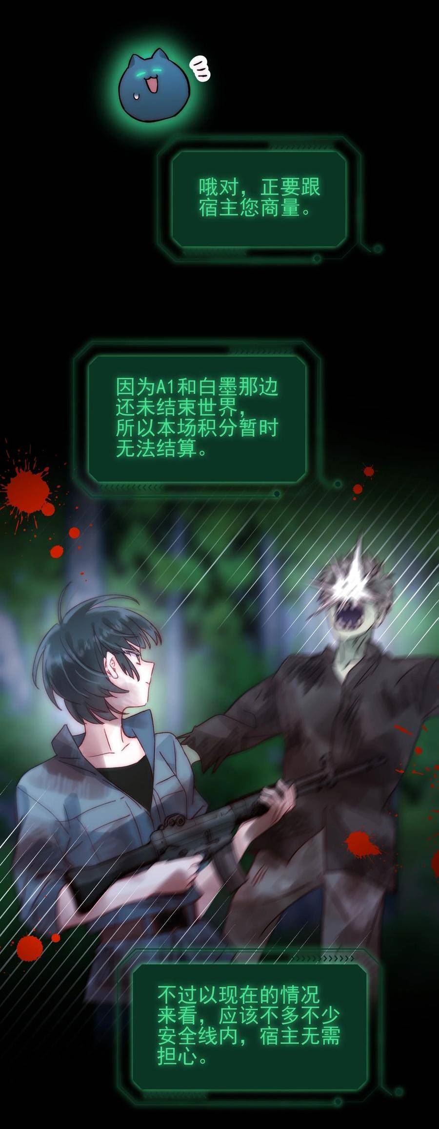 就像一场糟糕的鬼抓人游戏....他们花了一些时间,但最终还是得出了结论,这是某种只感染青少年的新式疾病。他们将它称作「青少年疫病」或是「虫症"。这种疾病的症状表现难以预料……有些不算太糟糕——几个脓包,一块难看的皮疹……有些则直接变成了怪物或是长出了新的肢节……不过症状如何本身无关紧要……只是你一旦被鬼抓到,便终身成为「它"了。