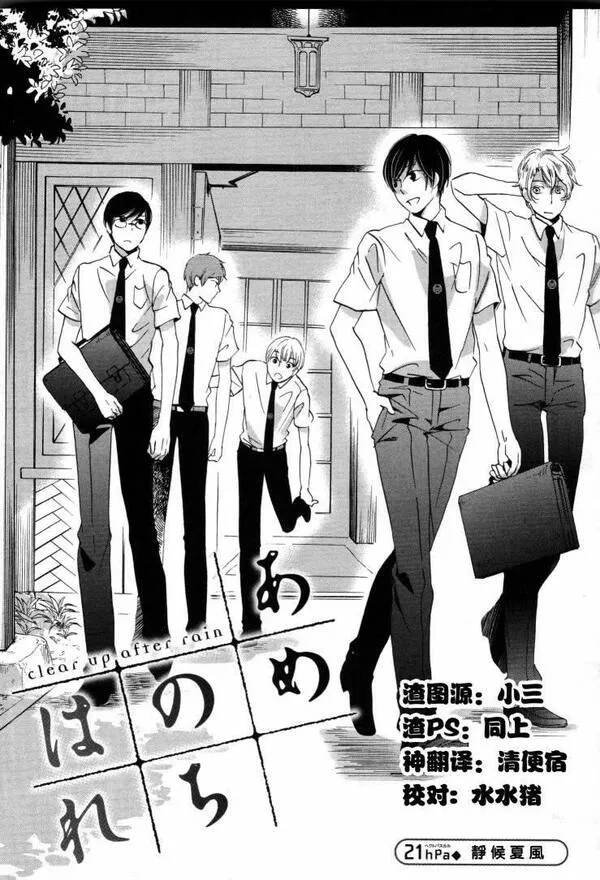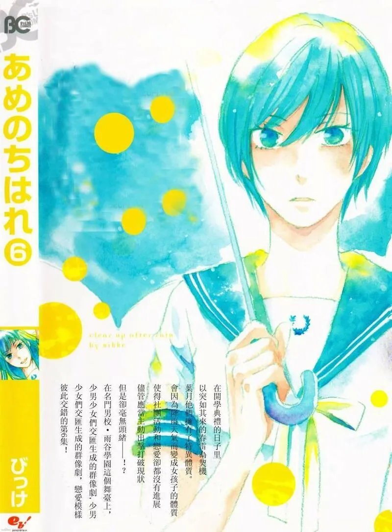 雨过天晴又名,类型为体育竞技的高人气漫画,漫画简介:名门高校·雨谷学园的入学仪式当天,罕见地下起来了春雨。巨大的雷鸣过后,新入学生的叶月、冬马、悠介、圆的身体忽然发生异变。不知为何,他们全都变成了女生——!!女体化之后,叶月她们开始在邻校的雨谷“女子”...