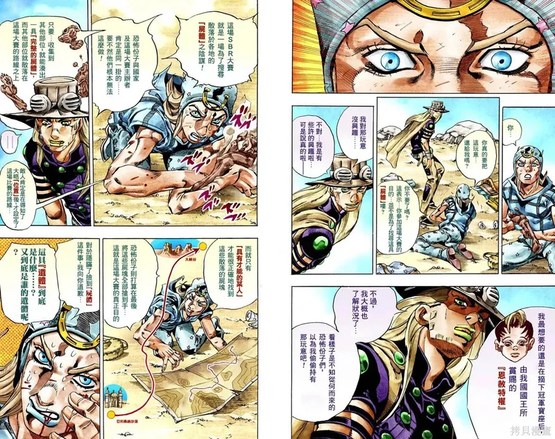 JoJo的奇妙冒险第7部飙马野郎又名SBR飙马野郎、JoJo的奇妙冒险、乔乔的奇妙冒险,类型为竞技的高人气漫画,漫画简介:JoJo的奇妙冒险已经进入到平行世界,因而不再叫『JoJo』而是命名为『Steel·Ball·Run』(简称S·B·R)。这就是荒木从2004年开始连载的最新漫画『SBR』。作者荒木飞吕彦在接受采访时说,“我想只要读过『JOJO』第6部就应该知道,世界循环了一周而进入到新的世界,而那就是这个『SBR』的舞台了……其实我的目的不是单纯的绘画『JOJO』的平行世界。那只是这整篇故事的前提,所以和故事本身其实没有关连的。不过,各位老读者也可以把『SBR』当作是『JOJO』第7部,因为『SBR』是一部位于『JOJO』的延长线上的新作品。” SBR单行本前言(翻译:黄金乔迷"鞘") 1.SBR其实是作为JOJO奇妙冒险的第七部创作的。但为了第一次看这部作品的朋友\,我不想特意强调这一点。而另一方面,我认为对漫画家来说,将自己过去的作品埋葬,改画完全新的作品并不是一种好的创作态度。作品的主题必须承续自过去。 2.就象季节变化或是人生路程一样,我认为作品的主题也必须延续于过去,不能够切断。 SBR中出现了和JOJO中人物名相仿的角色,可以把他们当作这一人物的祖先,或是把这看作平行世界。 SBR的主题依旧是“人类的赞歌”,在人生这一奇妙跑道上登场的人们将怎样奋勇前进呢!? 欢迎在动漫之家漫画网观看SBR飙马野郎漫画
