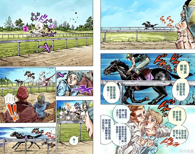 JoJo的奇妙冒险第7部飙马野郎又名SBR飙马野郎、JoJo的奇妙冒险、乔乔的奇妙冒险,类型为竞技的高人气漫画,漫画简介:JoJo的奇妙冒险已经进入到平行世界,因而不再叫『JoJo』而是命名为『Steel·Ball·Run』(简称S·B·R)。这就是荒木从2004年开始连载的最新漫画『SBR』。作者荒木飞吕彦在接受采访时说,“我想只要读过『JOJO』第6部就应该知道,世界循环了一周而进入到新的世界,而那就是这个『SBR』的舞台了……其实我的目的不是单纯的绘画『JOJO』的平行世界。那只是这整篇故事的前提,所以和故事本身其实没有关连的。不过,各位老读者也可以把『SBR』当作是『JOJO』第7部,因为『SBR』是一部位于『JOJO』的延长线上的新作品。” SBR单行本前言(翻译:黄金乔迷"鞘") 1.SBR其实是作为JOJO奇妙冒险的第七部创作的。但为了第一次看这部作品的朋友\,我不想特意强调这一点。而另一方面,我认为对漫画家来说,将自己过去的作品埋葬,改画完全新的作品并不是一种好的创作态度。作品的主题必须承续自过去。 2.就象季节变化或是人生路程一样,我认为作品的主题也必须延续于过去,不能够切断。 SBR中出现了和JOJO中人物名相仿的角色,可以把他们当作这一人物的祖先,或是把这看作平行世界。 SBR的主题依旧是“人类的赞歌”,在人生这一奇妙跑道上登场的人们将怎样奋勇前进呢!? 欢迎在动漫之家漫画网观看SBR飙马野郎漫画